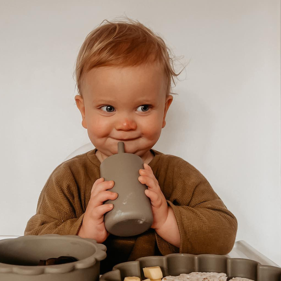 Our silicon cup is the perfect size for little hands. Help support oral health and speech with this multi-functional cup. Use it as an open cup, or perfect for using on the run with removable silicon straw. No need to sacrifice style for function with these beautiful accessories.